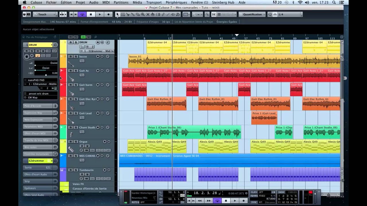 Nous allons commencer avec Cubase, l’objectif ici est d’attribuer des couleurs aux pistes afin d’obtenir des repères visuels et de gagner du temps lors de vos sessions de mixage.